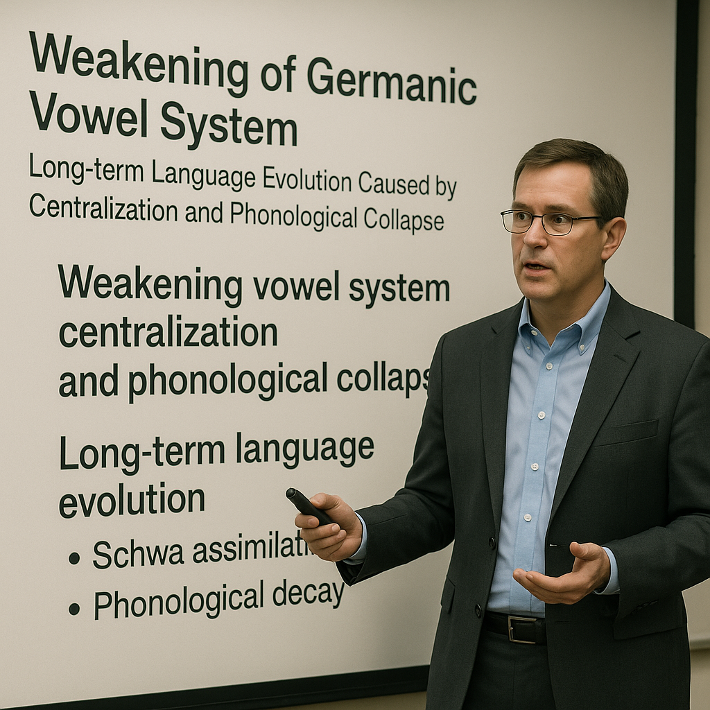 게르만어의 모음 체계 약화는 언뜻 보면 단지 발음의 편의성을 향한 자연스러운 변화처럼 보이지만, 실제로는 인도유럽어 계통 전체에서 극히 드물게 관찰되는 문법적·음운적·인지적 전면 재편의 출발점이었다. 이 변화는 음운 차원에서 시작되었지만, 단순한 모음 질의 약화에 그치지 않았고, 형태의 손실과 통사 구조의 재탄생, 의미 해석 방식의 확장, 단어 구조의 변형, 철자의 불투명성 증가, 그리고 궁극적으로는 영어라는 언어가 세계적 지식 언어로 부상하려면 반드시 필요한 인지적 처리 방식까지 재설계한 심층적 사건이었다. 따라서 게르만어의 모음 약화는 언어사의 변두리에 위치한 사건이 아니라, 영어의 정체성을 규정한 토대이자, 현대 영어의 구조적 특질 대부분을 설명하는 강력한 원인적 메커니즘이다.