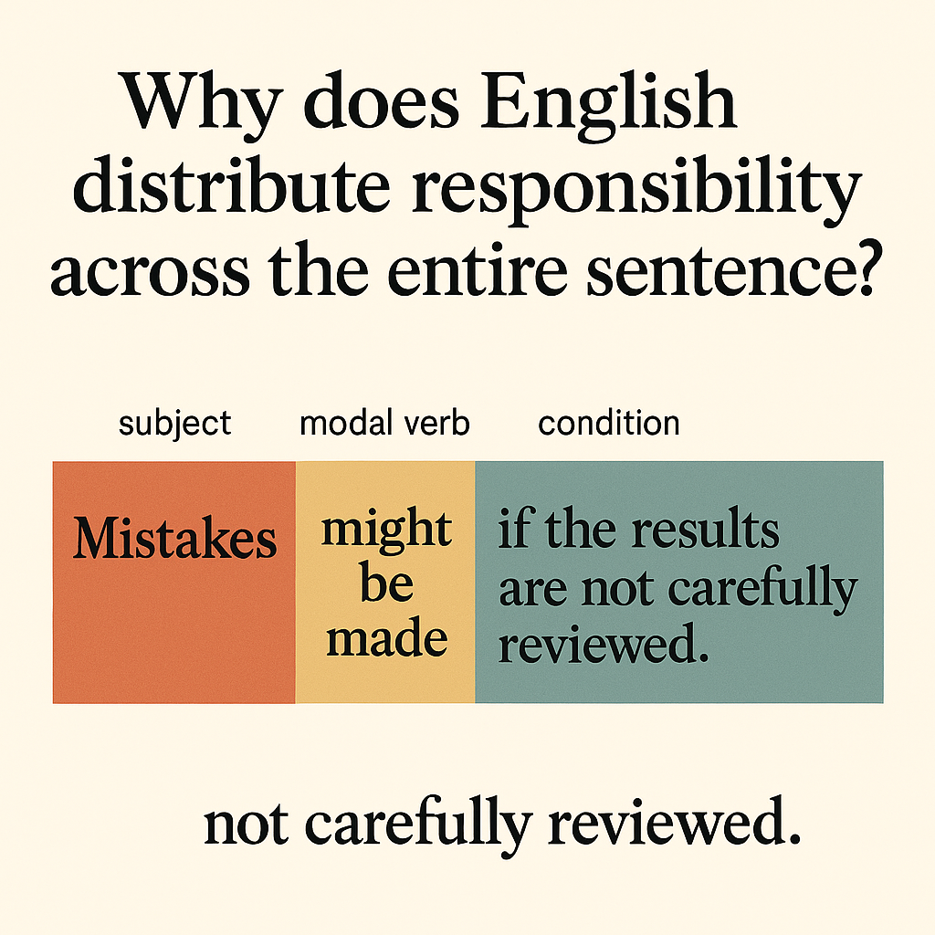 이 글은 영어가 책임을 문장 전체에 분산시키게 된 이유를 네 가지 축으로 정리한다.