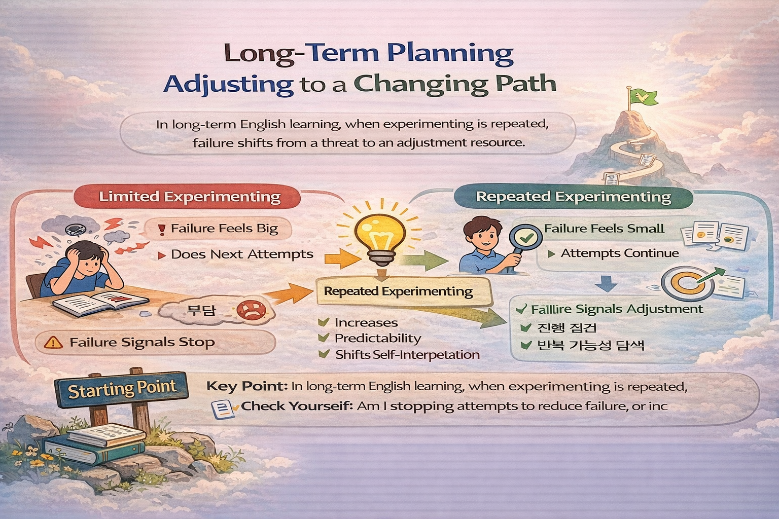 글 목적: 장기 영어 학습에서 목표가 성취 지점이 아니라 조정 기준으로 재정의될 때, 장기 계획의 성격이 어떻게 달라지는지를 TEFL 관점에서 설명